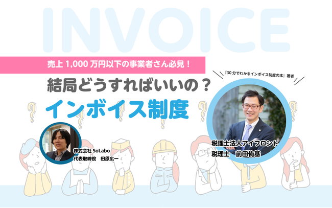 株式会社SoLabo(本社:東京都千代田区、代表取締役:田原広一、以下、SoLabo)は、税理士法人アイフロント(本社:愛知県名古屋市、代表社員:前田侑基、以下、アイフロント)と共同で、インボイスをテーマとした無料セミナーを開催いたします。