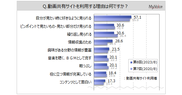 マイボイスコム株式会社(東京都千代田区、代表取締役社長:高井和久)は、8回目となる『動画共有サイト』に関するインターネット調査を2023年8月1日~5日に実施しました。調査結果をお知らせします。