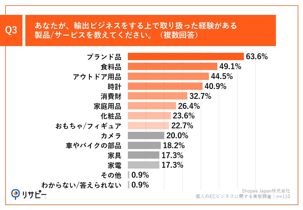 Q3.あなたが、輸出ビジネスをする上で取り扱った経験がある製品・サービスを教えてください。(複数回答)