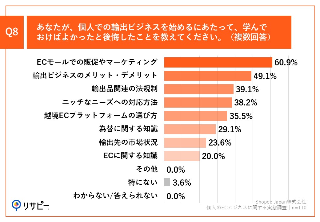 Q8.あなたが、個人での輸出ビジネスを始めるにあたって、学んでおけばよかったと後悔したことを教えてください。(複数回答)