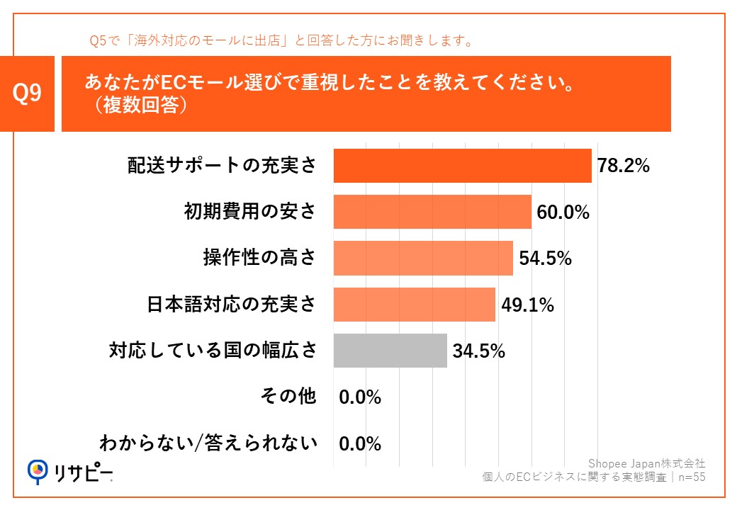 ・海外対応のモールに出店:50.0%